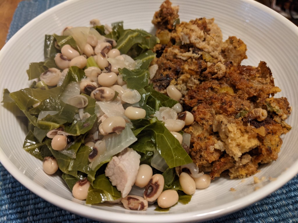 As I started in 2020, so I’ll ring in the New Year – with another recipe for 2020-1, using Rancho Gordo’s Super Lucky 2021 Black-eyed Peas. Rather than a new take, I’m going classic, and all together – the peas, the collards, the hock, all together with a bit of heat. Along with some hot cornbread, how could you do better to ring in the new year?